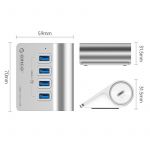 USB-концентратор 4xUSB 3.0 Type-A, вход USB 3.0 Type-A, ORICO, серебристый [ORICO-MH4PU-SV-BP-RU]